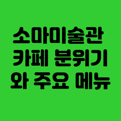 소마미술관 카페는 개방감 있는 통유리 인테리어와 공원 뷰가 특징이며, 핸드드립 커피와 시즌별 유기농 디저트가 주요 메뉴입니다.