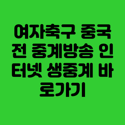 여자축구 중국전 중계방송 생중계는 지상파 방송사(KBS, MBC, SBS)와 온라인 플랫폼인 쿠팡플레이, 아프리카TV, 네이버 스포츠를 통해 실시간으로 시청할 수 있습니다. 경기가 열리는 공식 월드컵 일정에 맞춰 해당 플랫폼의 스포츠 채널에서 고화질 생방송이 제공됩니다.