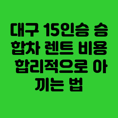 대구 15인승 승합차 렌트 비용은 차종과 대여 기간에 따라 1일 평균 15만 원에서 25만 원 내외로 형성되며, 사전 예약과 평일 이용 시 최대 20%의 비용 절감 효과가 있습니다.